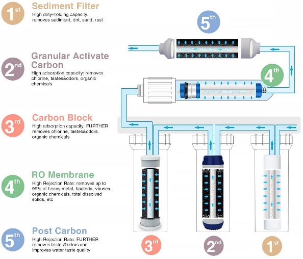 Removes particles larger than .0001 microns, representing 85-90% of all organic compounds, protozoa, bacteria, and viruses including Covid 19 which is 1000 times larger, and can't get through the reverse osmosis membrane.